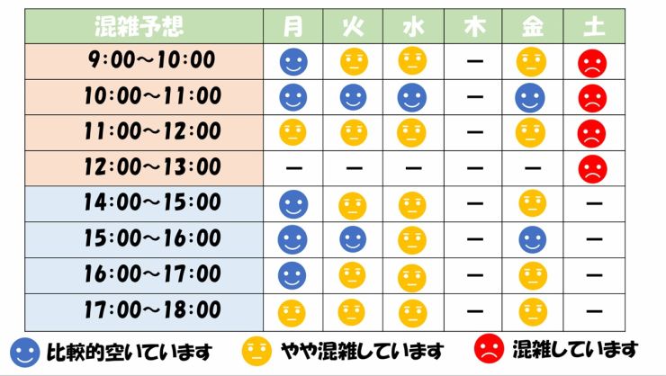 | 9:00〜12:00 | ● | ● | ● | ー | ● | 9:00〜 13:00 |
